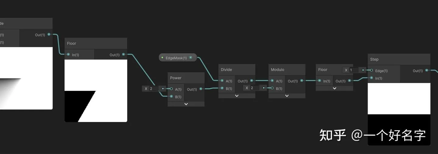 - 使用step获得硬边缘,使用smoothstep获得过渡边缘,相加后得到第一部分最终效果