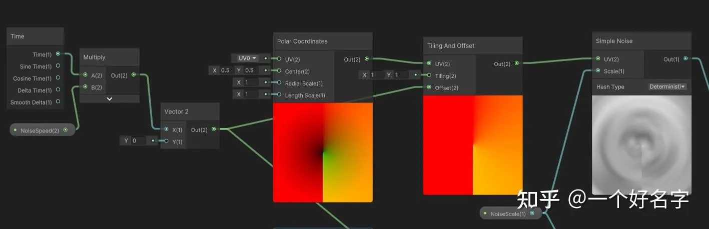 Polar Coordinates节点将 UV 转换为(r,θ)格式。 - 动态噪声:将